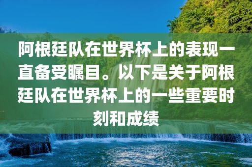 阿根廷队在世界杯上的表现一直备受瞩目。以下是关于阿根廷队在世界杯上的一些重要时刻和成绩